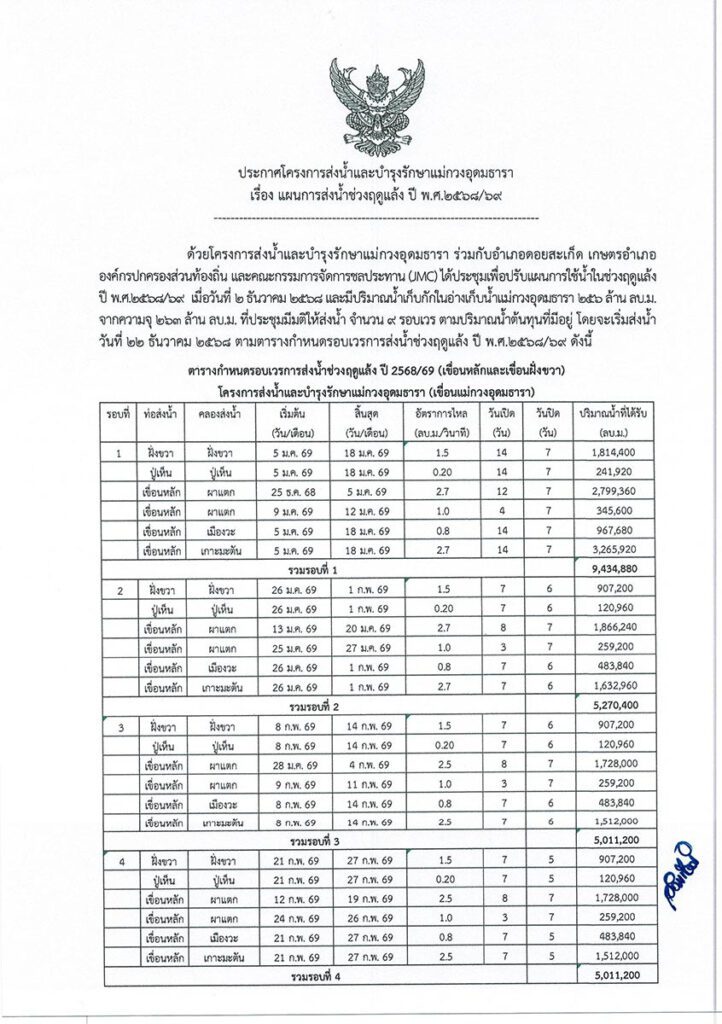 เคาะส่งน้ำช่วงแล้ง 68/69 ใช้น้ำเขื่อนแม่กวงฯ กว่า 110 ล้าน ลบ.ม. ให้เกษตรกว่า 1 แสนไร่