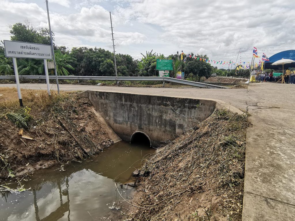 “อาคารอัดน้ำแห่งนี้เป็น 1 ใน 4 แห่งที่ เทศบาลตำบลขัวมุงใช้งบประมาณของเทศบาลก่อสร้าง โดยโครงการชลประทานลำพูนอนุเคราะห์ออกแบบให้ ต้องขอบคุณทั้งกรมชลประทาน และสมาชิกสภาเทศบาลขัวมุงที่ผ่านงบประมาณเพื่อดำเนินการก่อสร้างอาคารอัดน้ำทั้ง 4 แห่งนี้ เมื่อแล้วเสร็จอาคารอัดน้ำจะทำหน้าที่เสมือนเขื่อนกั้นน้ำในลำเหมือง เพื่อยกระดับน้ำหน้าอาคาร น้ำในลำเหมืองล้องโป่งนี้จะยกระดับขึ้นก็จะกลายเป็นแกล้มลิง น้ำจะมีอยู่ในลำเหมืองตลอดเวลาอย่างน้อย 50 ซม. ซึ่งจะส่งผลต่อทั้งระบบนิเวศในลำเหมือง ทั้งระบบน้ำใต้ดินที่จะมีเพิ่มมากขึ้น ที่สำคัญพี่น้องประชาชน เกษตรกรจะมีน้ำใช้เพิ่มมากยิ่งขึ้น” นายก ทต.ขัวมุง กล่าว