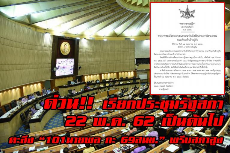 ด่วน!! เรียกประชุมรัฐสภา เริ่ม 22 พ.ค.62 ตะลึง”101นายพล”พรึบสภาสูง ดัน สนช.อีก69คน รับอานิสงค์ด้วย