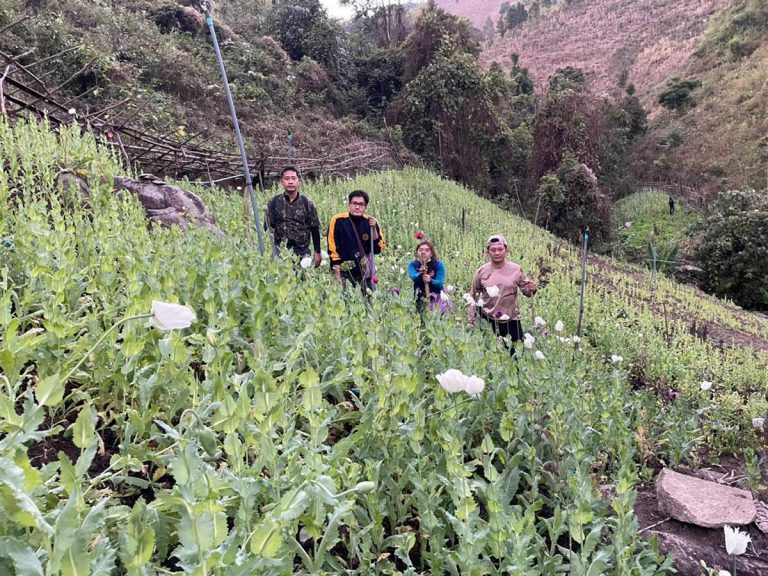 ศป.ปส.อ.แม่แจ่ม ตรวจตัดตอนทำลายไร่ฝิ่นในพื้นที่ พบ 2 แปลง ไร้เงาเจ้าของไร่ ทำการตัดเผาทำลาย