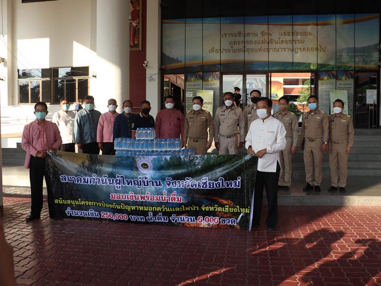 สมาคมกำนัน ผู้ใหญ่บ้านฯ จ.เชียงใหม่ มอบเงิน 2.5 แสนบาท หนุนแก้ปัญหาไฟป่าหมอกควัน มอบผ่านพ่อเมืองส่งต่อให้อำเภอ