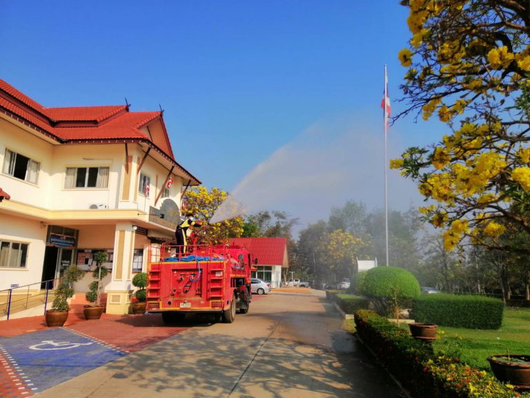 อบต.ดอยหล่อ จัดรถ พ่นละอองน้ำ เพื่อเพิ่มความชุ่มชื้นและลดหมอกควัน