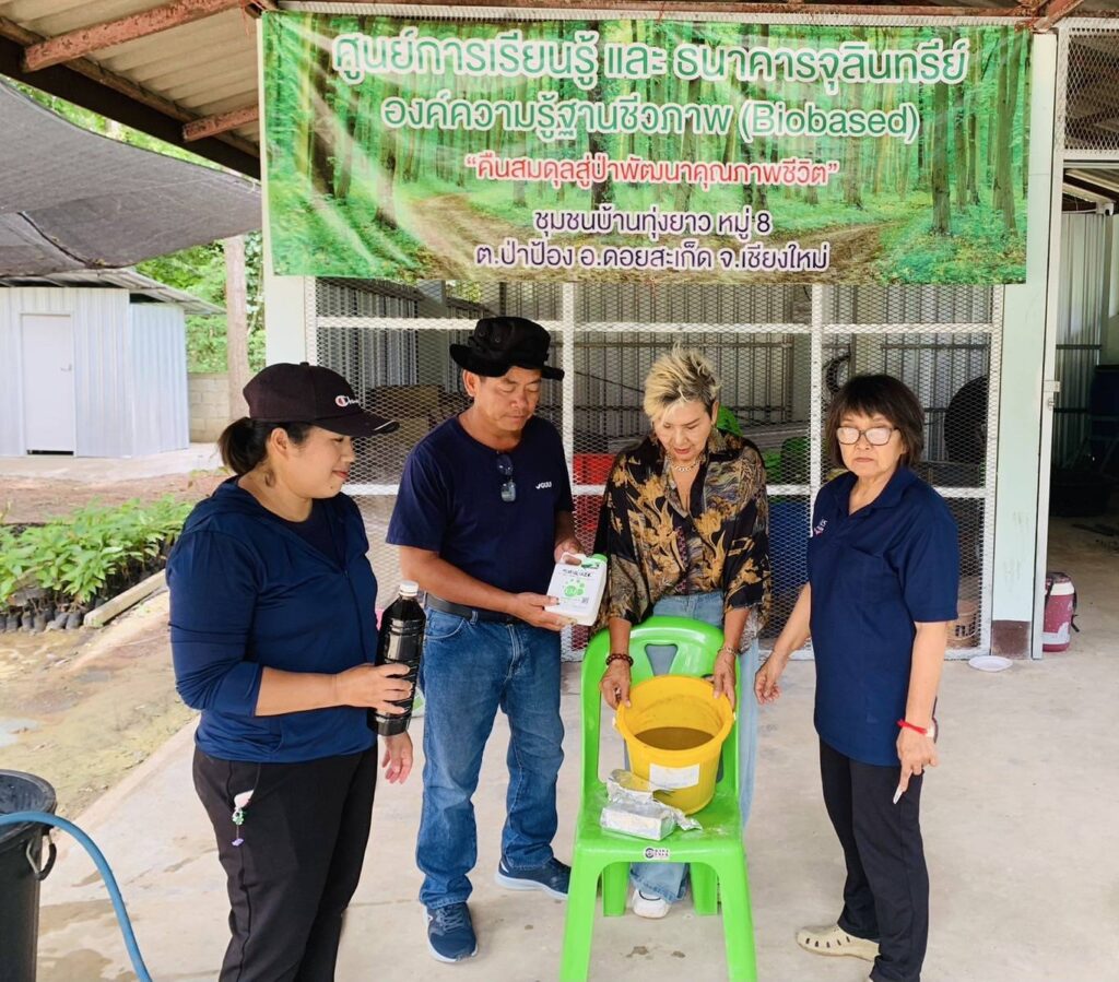 “ชุมชนได้ดำเนินงานและเตรียมความพร้อมมาแล้วกว่า 2 ปี มีความก้าวหน้าในระดับหนึ่ง มีการก่อตั้งศูนย์เรียนรู้และธนาคารจุลินทรีย์ชุมชนที่ดำเนินการผลิตเกี่ยวกับ หัวเชื้อจุลินทรีย์เพื่อการฟื้นฟูป่าชุมชน และใช้ในการเกษตรและครัวเรือน การผลิตหัวเชื้อราไมคอร์ไรซ่า การเพาะพันธุ์กล้าไม้ป่า เพื่อฟื้นฟูป่าชุมชนและเป็นผลิตภัณฑ์จำหน่ายทั่วไป ผลิตหัวเชื้อไมคอร์ไรซ่า และกล้าไม้ป่าที่ใส่เชื้อไมคอร์ไรซ่า และ กำลังดำเนินการผลิตสินค้าชุมชนด้านอินทรีย์ชีวภาพ ใช้ในการเกษตรและครัวเรือน เช่น หัวเชื้อจุลินทรีย์ ปุ๋ย ฮอร์โมนเพื่อการเจริญเติบโตของพืช จุลินทรีย์บอล ใช้ในการบำบัดน้ำเสียและก้อนปุ๋ยผสมสารอาหารพืช ทำน้ำยาล้างจาน น้ำยาซักผ้า แชมพู น้ำยาถูพื้น เป็นต้น นอกจากนี้ยังจะมีการพัฒนาสินค้าชุมชนจากฐานทรัพยากรชุมชน เช่น ปู๋ยหมัก สารปรับปรุงดินจากเศษไม้ในป่าที่นำมาเผาถ่านไบโอชา” กำนันสมพงค์ กล่าว