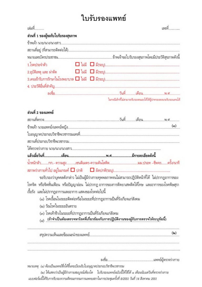 กรมการขนส่งทางบก ระบุ!!! ตั้งแต่วันที่ 1 มีนาคม 2561 เป็นต้นไป การยื่นคำขอรับใบอนุญาตขับรถหรือใบอนุญาตเป็นผู้ประจำรถ ต้องใช้ใบรับรองแพทย์ตามแบบที่แพทยสภารับรอง(2551) เท่านั้น ซึ่งผู้ขอรับใบรับรองแพทย์ต้องรับรองประวัติตนเอง การผ่าตัด โรคประจำตัวที่สำคัญ และลงลายมือชื่อในใบรับรองแพทย์ยืนยันความถูกต้อง เพื่อให้เป็นมาตรฐานเดียวกัน